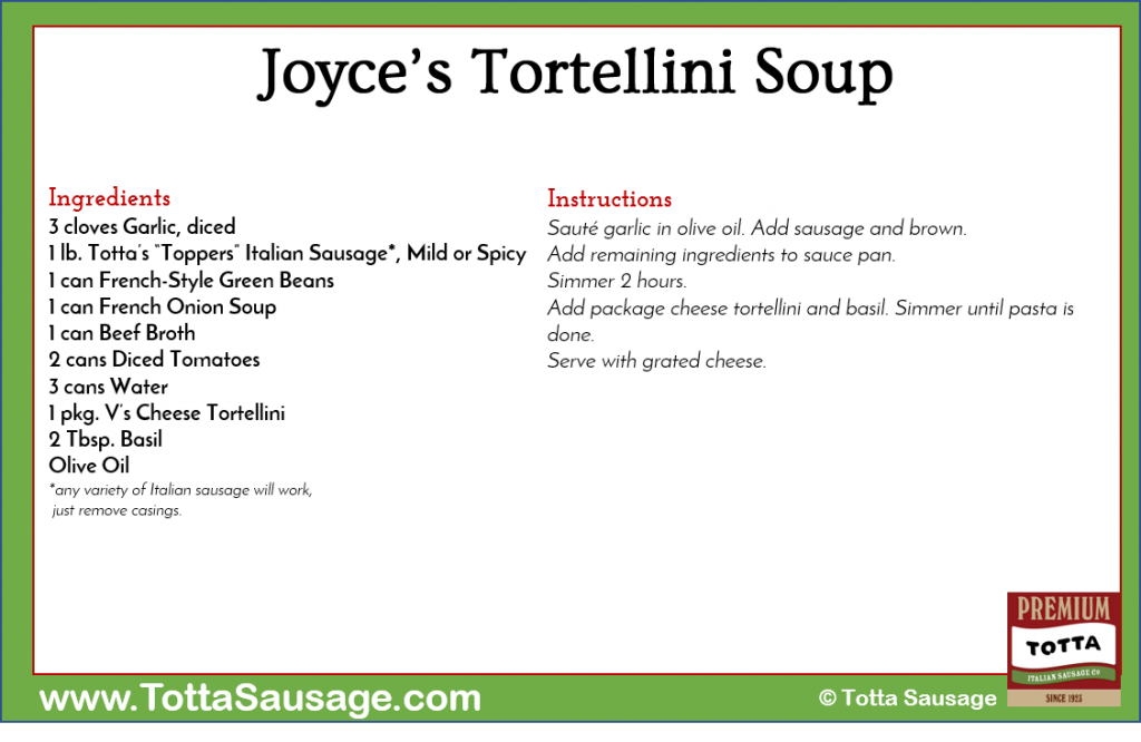 Joyce’s Tortellini Soup