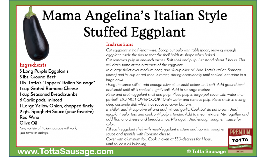 Mama Angelina’s Stuffed Eggplant Italian Style