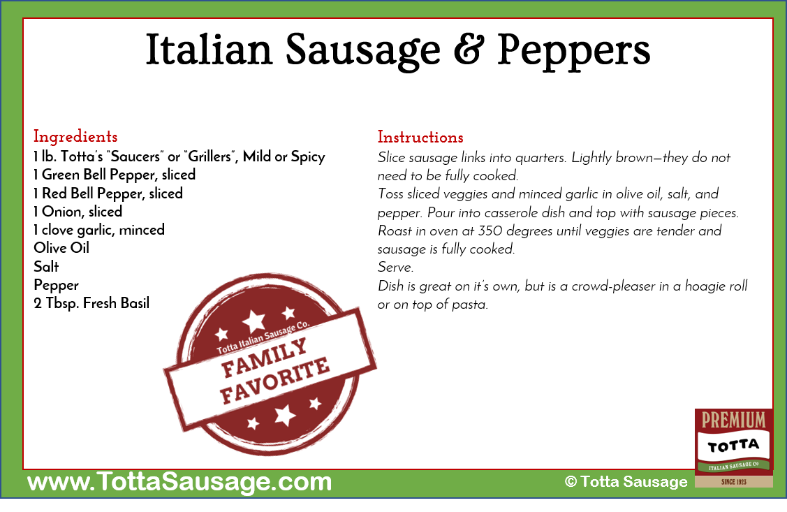 Our favorite family recipes using Totta’s Truly Sicilian Italian Sausage.